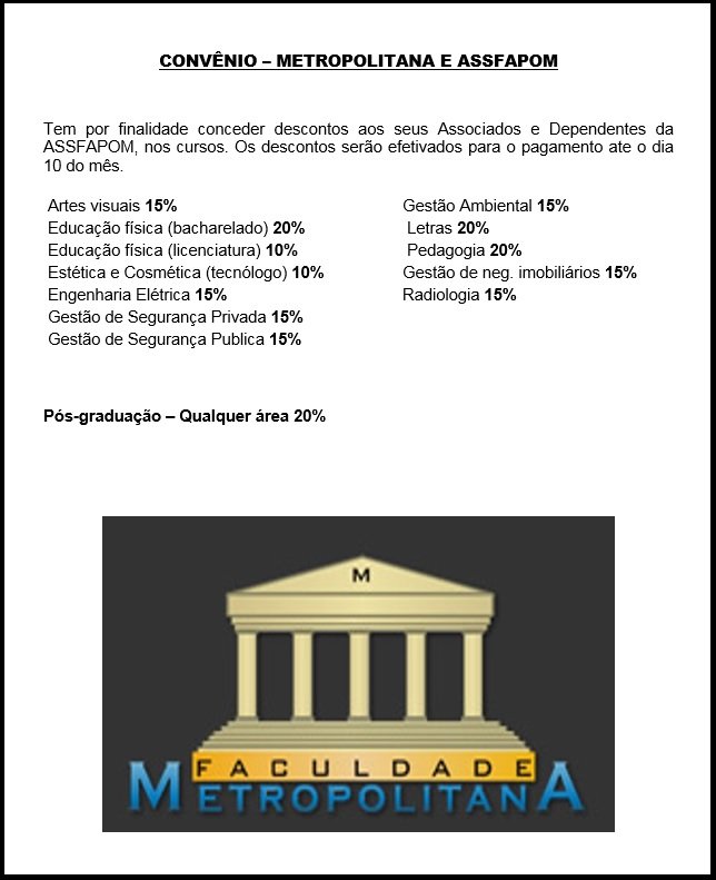 ASSFAPOM firma convênio com Faculdade Metropolitana