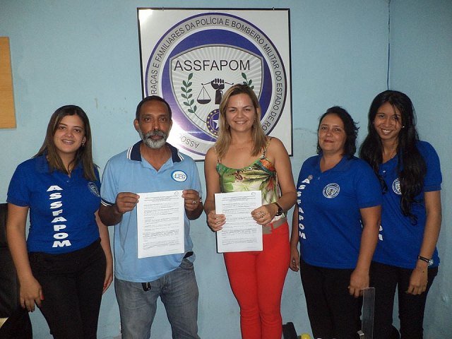 Na foto o momento da assinatura do Convênio com a Senhora Ada Dantas, Presidente EM exercício da ASSFAPOM com as demais Colaboradoras Daniele, Zuleica e Iara.