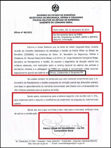“O comandante Geral da PM, Paulo Cesar de Figueiredo, que deveria defender a classe por inteiro, buscam os benefícios só para “A” ou “B” causando uma grande injustiça à maioria, isso não é certo, tão pouco justo quem trabalha muito ficar de fora do reajuste salarial” desabafou Jesuino Boabaid. “Vale lembrar, que a atividade fim da policia militar (rádio patrulha) é realizada quase que 100% por Soldados e Cabos, são esses profissionais que estão na linha de frente, arriscando suas vidas, sendo esse o maior motivo de não ficar de fora da proposta feita pelo comando geral da PM a algumas associações”. Ressaltou o presidente.