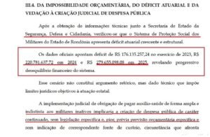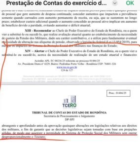 No entanto, uma análise do Tribunal de Contas do Estado de Rondônia (TCE/RO) apontou a possibilidade de insuficiência de recursos no futuro, o que pode comprometer o pagamento dos militares que estão e irão se aposentar, levantando o risco de colapso no sistema previdenciário da categoria.