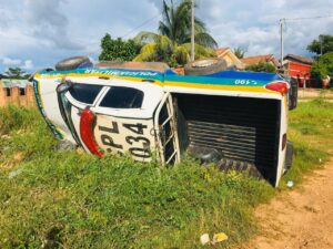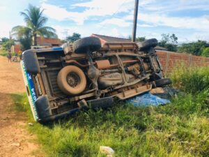 Nesta tarde de sábado (15), uma viatura que estava em ocorrência Polícial, ao passar por uma ponte de madeira, no município de Ji-Paraná, quebrou o feixe de mola e capotou, e todos integrantes da guarnição estão bem.