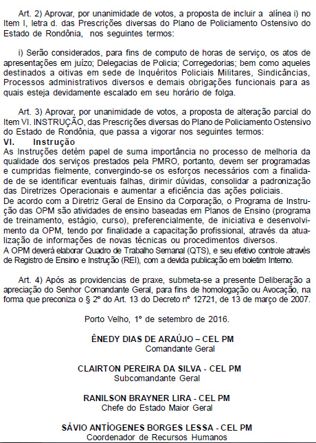 A Presidente Ada Dantas da Associação dos Praças e Familiares da Polícia e Bombeiro Militar do Estado de Rondônia (ASSFAPOM), falou sobre a Deliberação do Conselho Deliberativo Estratégico e Gestão da Polícia Militar do Estado de Rondônia (CONDEG), em relação ao Decreto 12.721de 13 de março de 2007, que trata sobre o trabalho de Policiais Militares durante seus dias de folga.