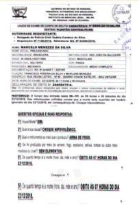 Para escapar de sua culpa e responsabilidade LEANDRO e WILLIAM resolveram contar uma nova estória, na qual Renato e Bruno ao chegar no local encontraram Marcelo ainda com vida, o colocaram na viatura da Força Nacional e o levaram para um lugar ermo onde a sangue frio o executaram e colocaram novamente dentro da viatura e depois de toda essa barbárie o levaram para o hospital.