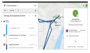 Os pontos de GPS que demonstram os deslocamentos de Renato e Bruno da ocorrência ao hospital, e do hospital para a base.